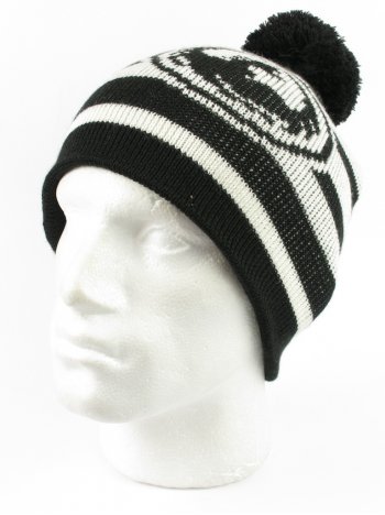 Striped Bobble Beanie with knitted Dragon Logo